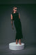 Crafted from soft crepe fabric, this elegant midi dress is designed to flatter your figure. It features a square neckline, structured shoulders, and gold statement buttons down the front. A folded detail at the waist adds shape and style. Perfect for special occasions or polished daywear.