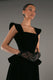 A classic black dress with white polka dots and a soft, elegant shape. The satin tie and collar add a touch of sophistication, giving it a timeless Ascot-inspired look.